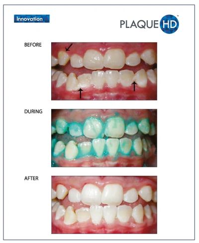 the front teeth, you may start to use a smear layer of fluoride toothpaste to brush your child's teeth. Children should only use a smear layer of toothpaste until they able to spit out the toothpaste after every brushing, at this time you may transition to a pea size amount of toothpaste. If your child eats a large amount of toothpaste (you find them with an open tube that appears to be half empty) have them drink milk and contact your dentist, poison control center, or doctor as soon as possible, they may require emergency care. For those children who have a hard time brushing with regular toothpaste we recommend PlaqueHD which has Targetol Techology to help identify and eliminate plaque.